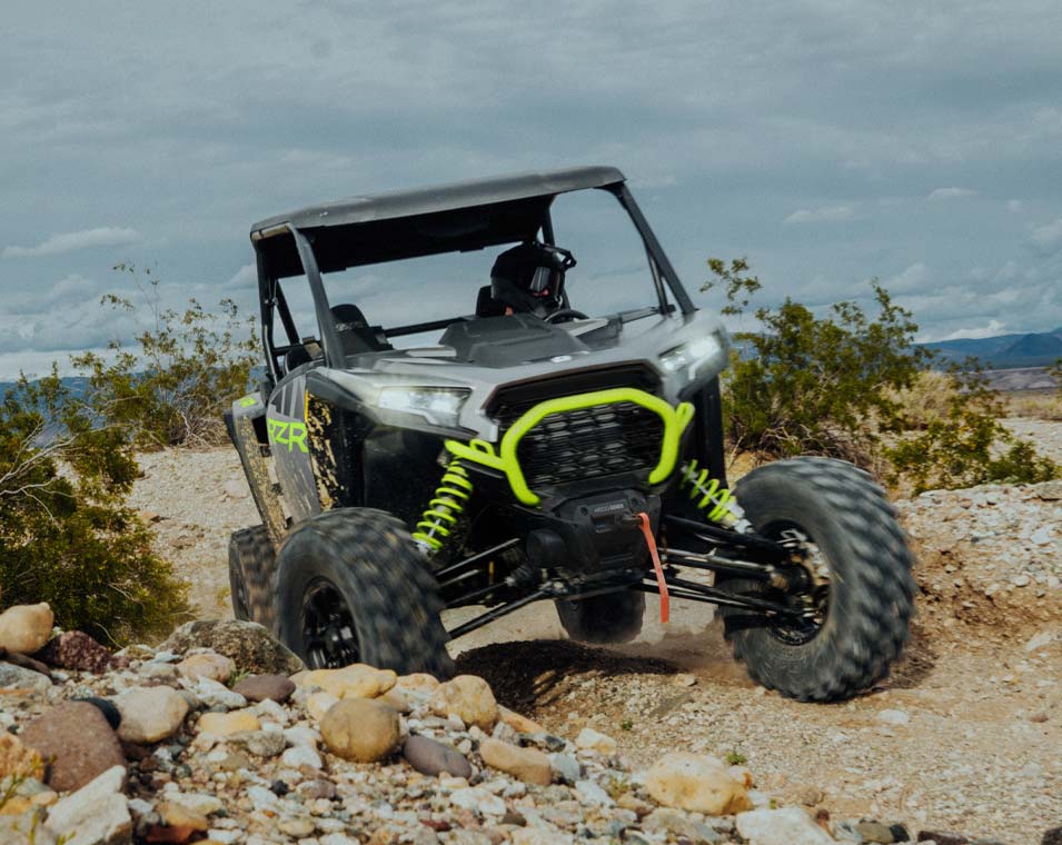 Nästa revolution av RZR DNA med responsiv prestanda, grepp och markfrigång samt smidighet för att ta sig an terrängkörning.