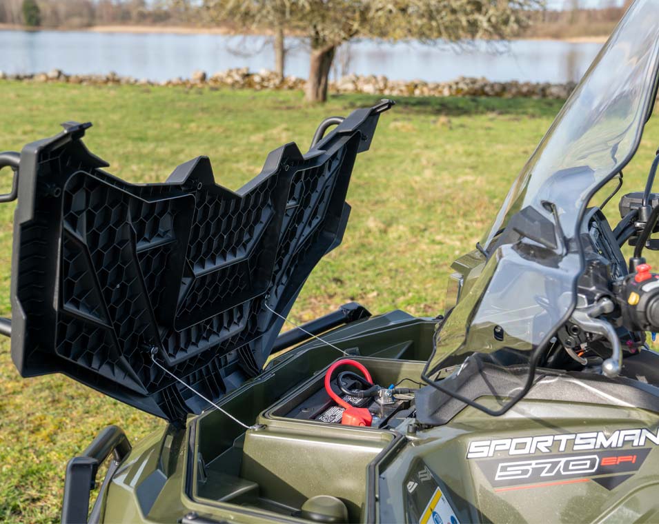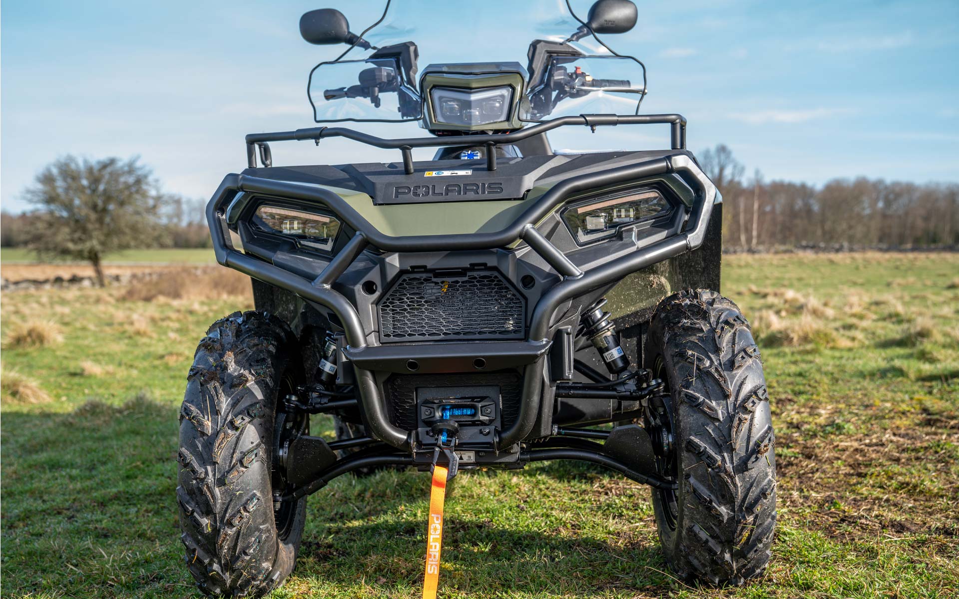- 3,500 Lb. (1,588 kg) Polaris HD Vinch med syntetisk lina och NYTT automatiskt stopp.