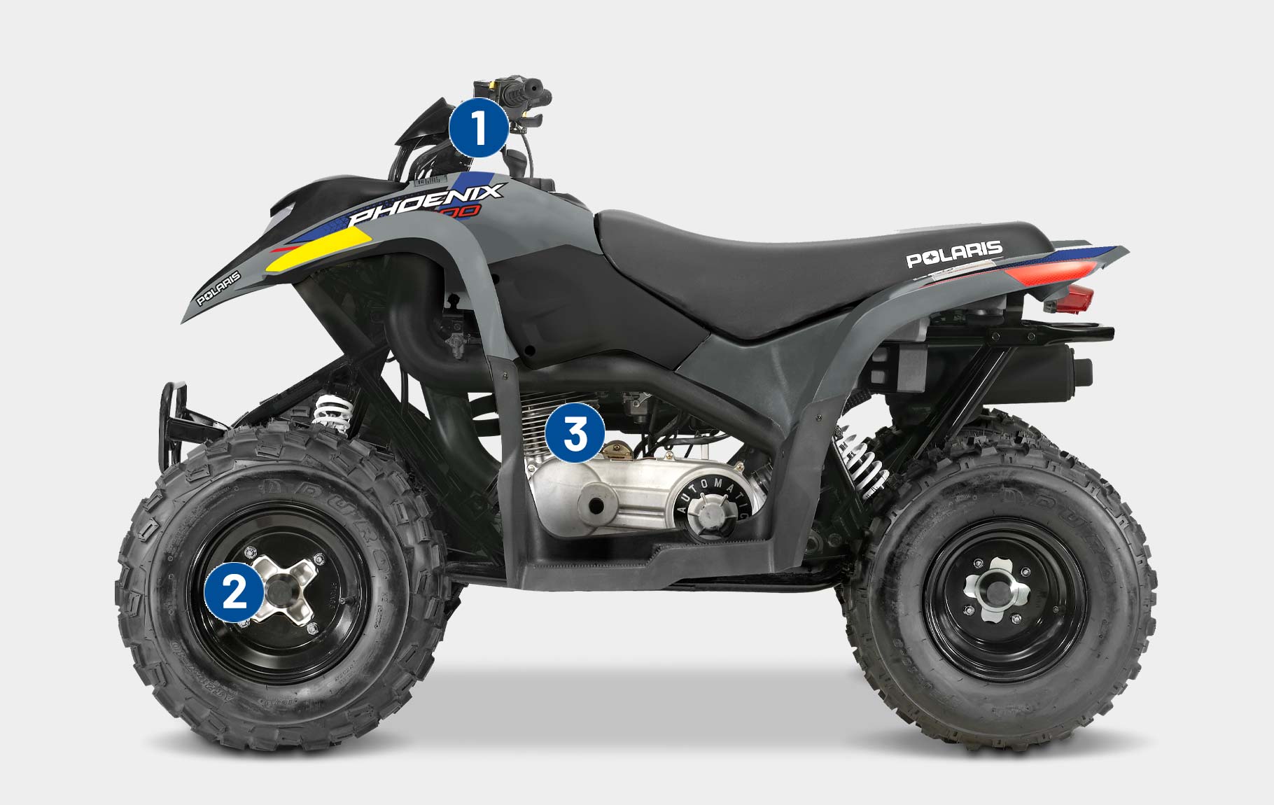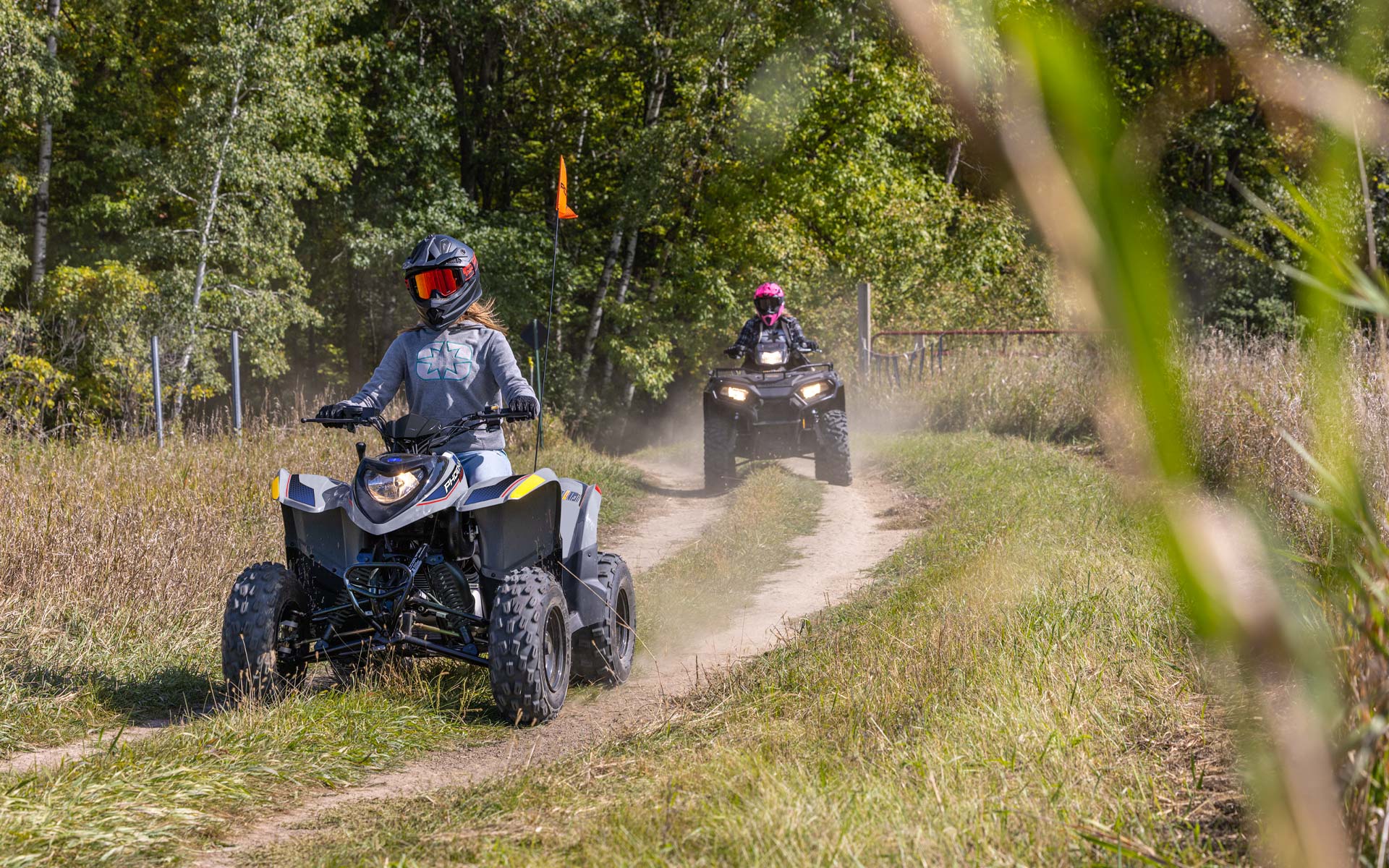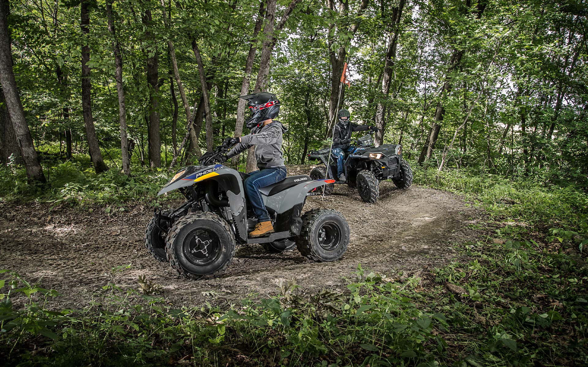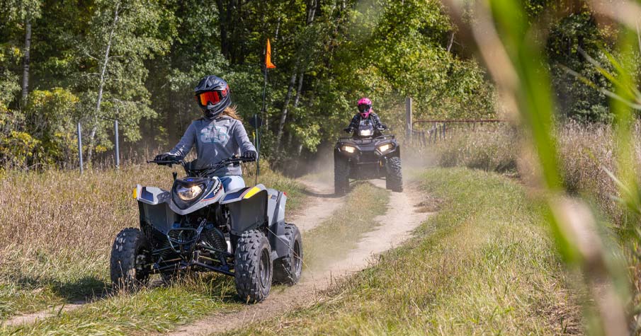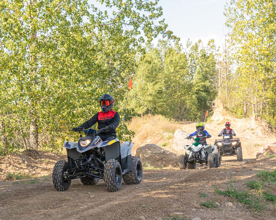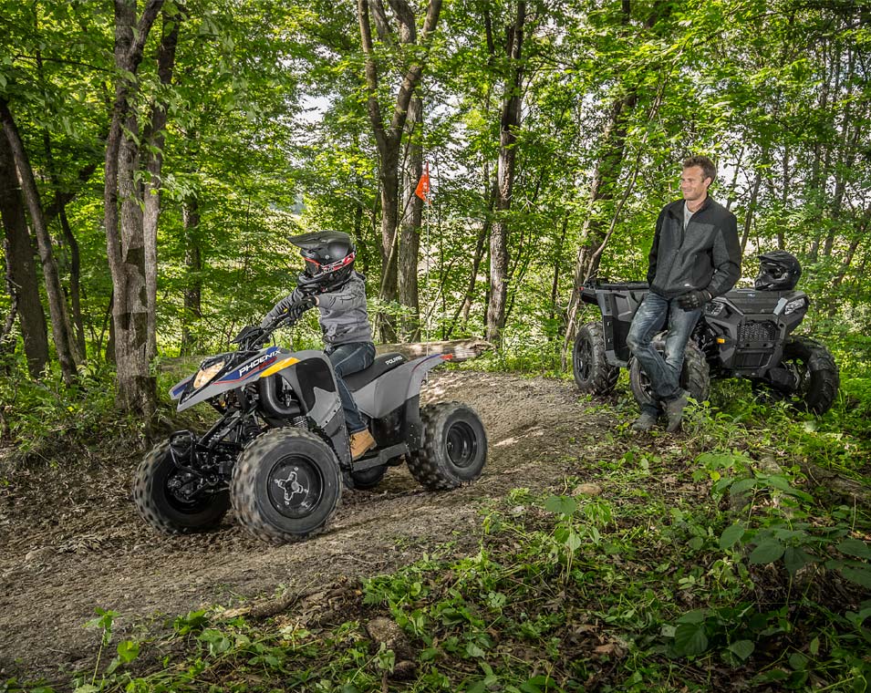 Med en 196 cc 4-taktsmotor och lättjusterbar hastighetsbegränsare kan yngre förare växa med sin ATV. Tillverkad för förare i åldern 14+.